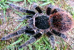 Bolivian Salmon (Acanthoscurria chacoana) 1", $20 each ON SALE!! This beautiful Bolivian terrestrial is grayish to black with reddish to pink overall setae. Faint striping on legs, that are more bold at first molt. Nice size at 6" and bulky as adults. Very nice looking spider, but is a bit on the aggressive side. Just Hatched out at Swift's!! |